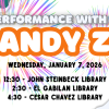 Join Andy Z for a live concert at Cesar Chavez Library! Get ready to sing, dance and have fun!